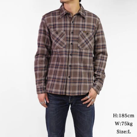 ・緯糸にスラブ糸 にて織り上げられた 11oz. フランネルシャツ。